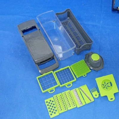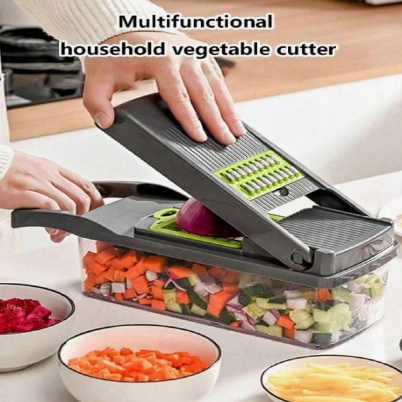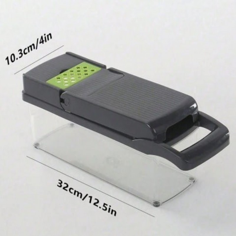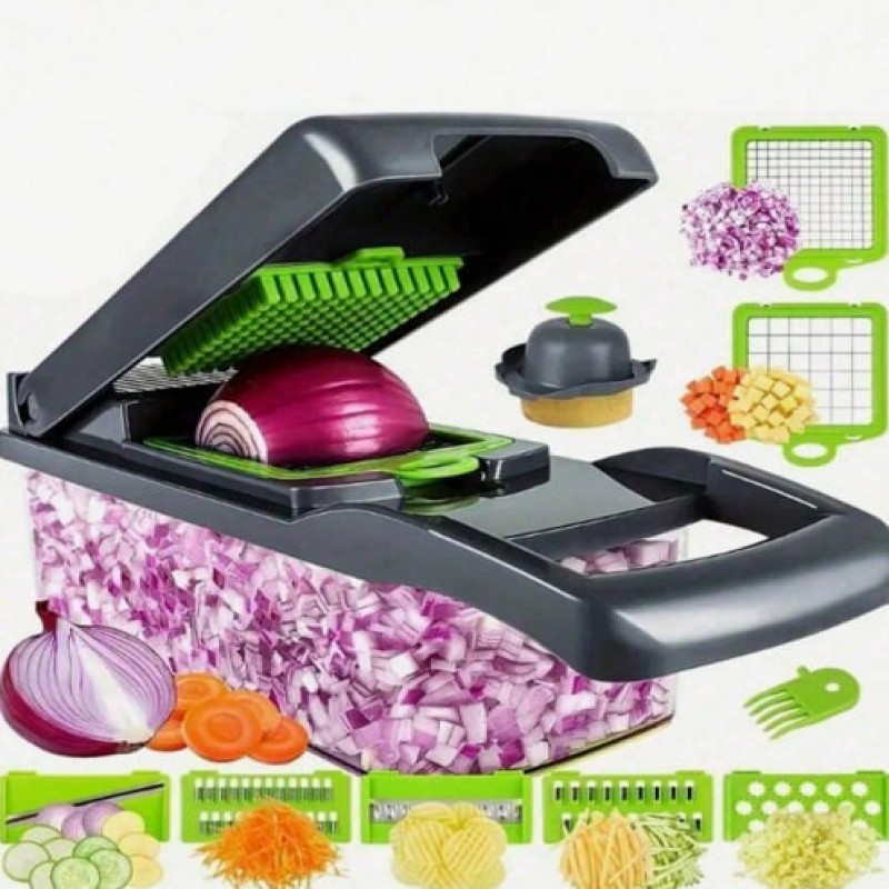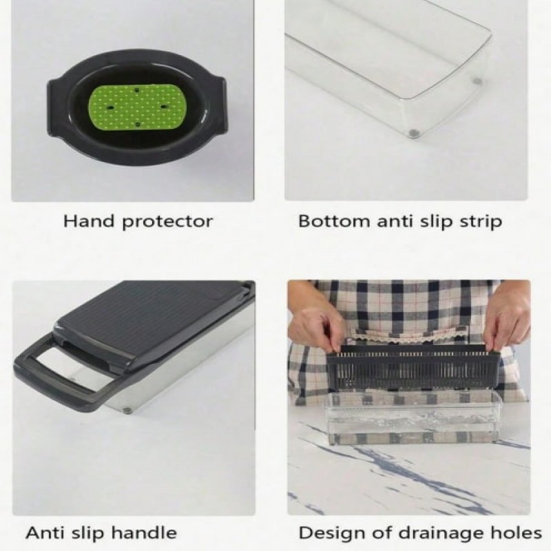 1 juego Cortador de verduras 14-en-1, 8 piezas de cuchillas de acero inoxidable y recipiente, adecua