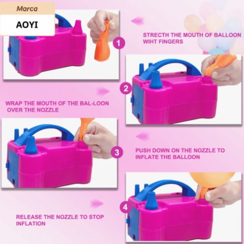 AOYI Bomba eléctrica mini para globos, inflador eléctrico portátil de 600W con doble boquilla para d ₦73,265 |