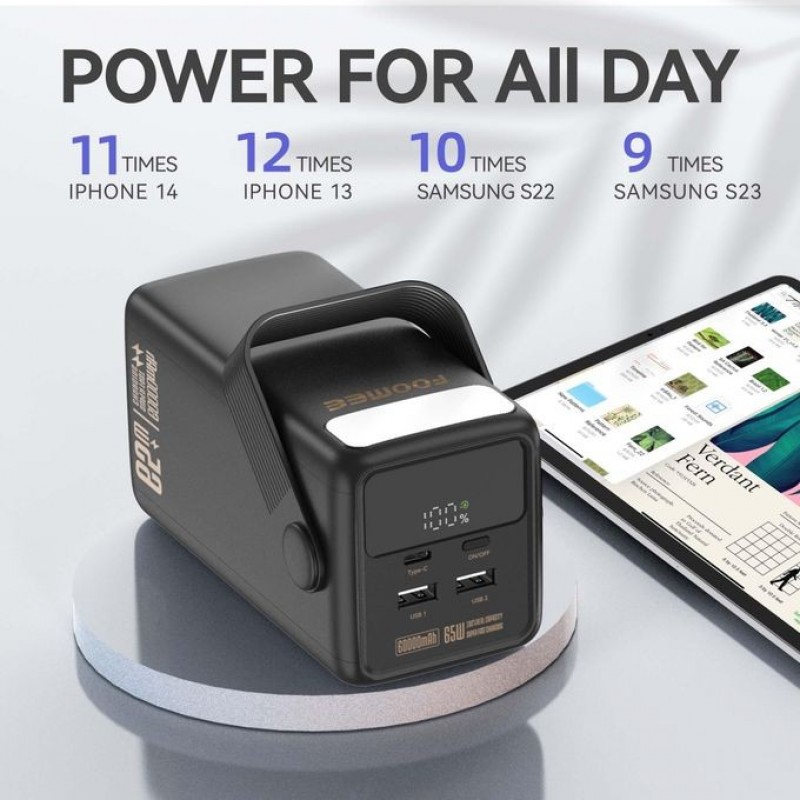 Share this product FOOMEE 60000mAh 65w Super Fast Charging Power Bank with Flashlight, Digital Di