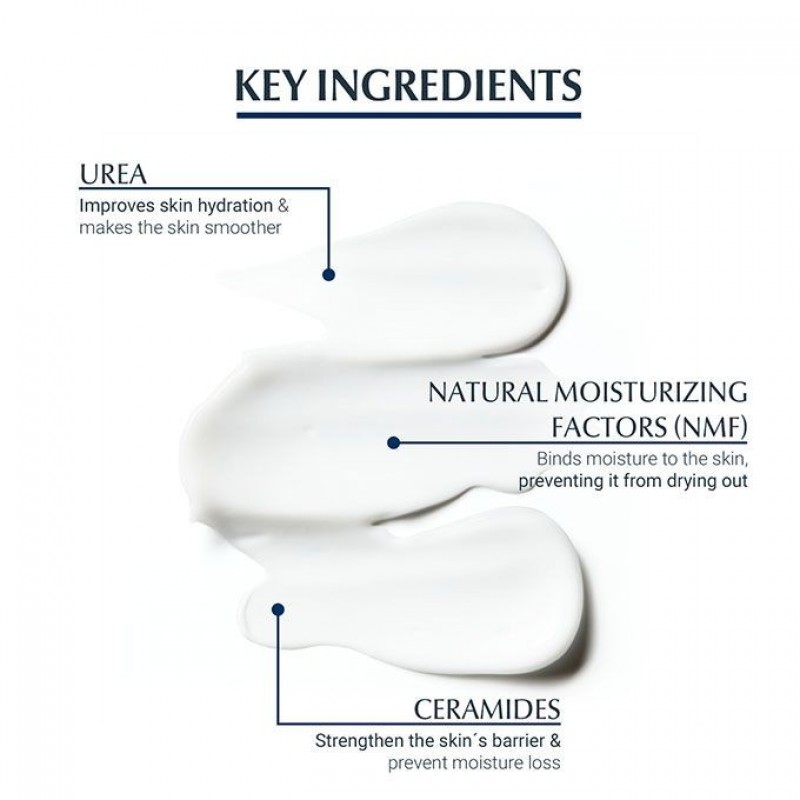 Urea (also known as Carbamide) is produced naturally by the skin and is part of the essential Natural Moisturizing Factor (NMF) which regulates skin’s moisture content. Urea is hygroscopic, which means it is able to bind moisture into the outermost layer of skin. It is also keratolytic, meaning helps the skin to get rid of dead skin cells dead skin cells, to make it smooth again, and has anti-itch and anti-microbial properties.